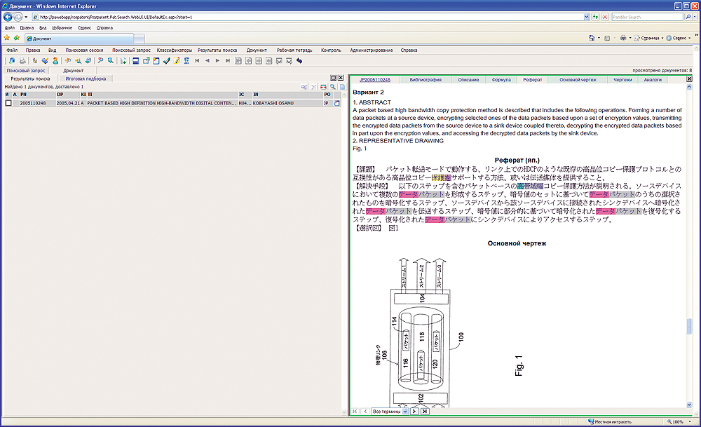 Certain screenshots, illustrating the PatSearch system operation are represented on Fig. 1-4.