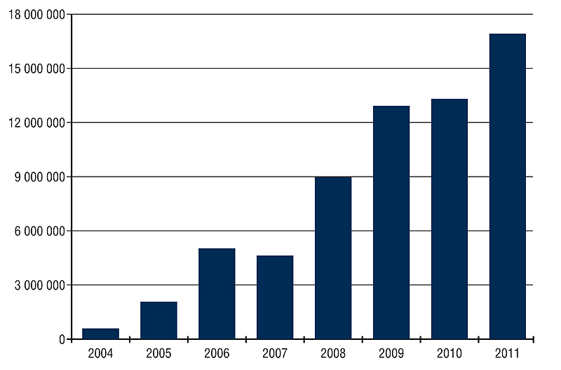 As of December 31, 2011 1878 applications were filed by means of the KPS RTZ.