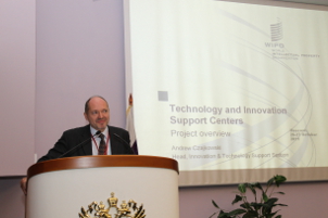 M. V. Jakovleva (Federation Council Committee on Education and Science of the Federal Assembly the Russian Federation), A. V. Naumov (Ministry of Education and Science of the Russian Federation), E. A. Livadny (Government Corporation “Rostechnology”), A. A. Zdunov (Ministry of Economy of the Republic of Tatarstan), V. V. Turenko (The St. Petersburg Chamber of Patent Attorneys), L. V. Butenko (“Intellectual Property Agency “Butenko and Partners”” LLC), A. P. Agureev (“Souzpatent” LLC). The report of A. Czajkowski, the representative of WIPO, was received with the highest interest, as well as the reports from foreign patent offices: S. Yamamoto (Japan Patent Office), N. Clark (European Patent Office), E. Kossonaku (European Patent Office).