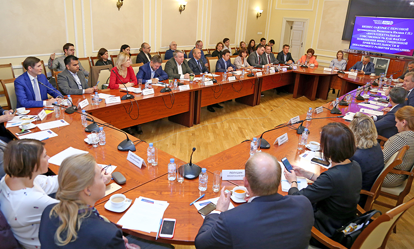 В четверг, 18 октября 2018 года, в формате бизнес-завтрака состоялась встреча руководителя Федеральной службы по интеллектуальной собственности Григория Ивлиева с активом Общероссийской общественной организации «Деловая Россия». Главной темой встречи стала роль интеллектуальной собственности в инвестиционной привлекательности и динамичном развитии компании.