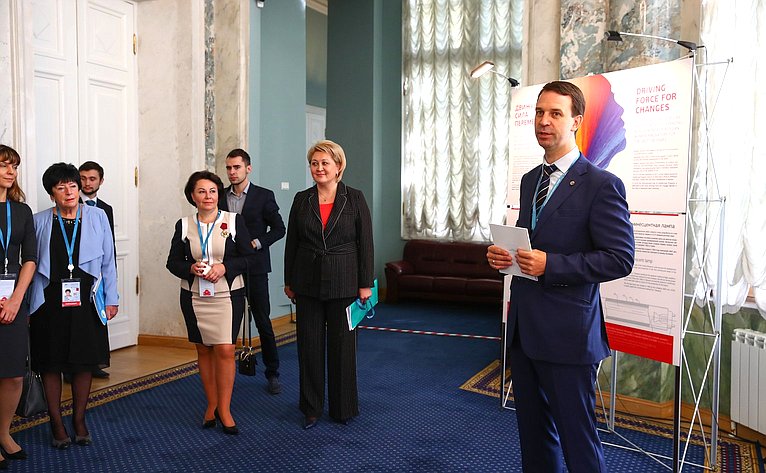 На площадке Второго Евразийского женского форума первый заместитель председателя Комитета Совета Федерации по науке, образованию и культуре Лилия Гумерова приняла участие в открытии выставки «Движущая сила перемен».