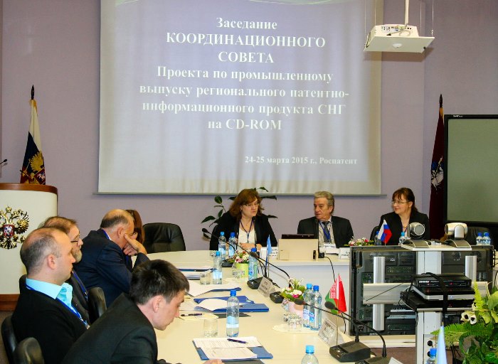 24-25 марта 2015 г. в Роспатенте состоялось очередное заседание Координационного совета Проекта по промышленному выпуску регионального патентно-информационного продукта стран СНГ на CD-ROM (далее - Координационный совет) под председательством руководителя Координационного совета Б.Л. Генина (Российская Федерация).