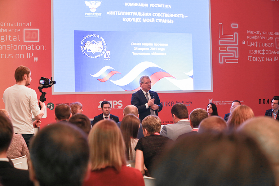 24 апреля в рамках Международной конференции «Цифровая трансформация: Фокус на IP» прошел очный тур защиты проектов XVI Всероссийского конкурса «Моя страна – моя Россия» в номинации Роспатента «Интеллектуальная собственность – будущее моей страны».