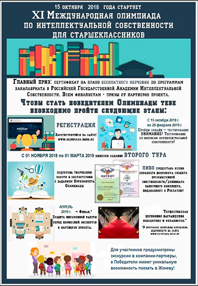 15 октября 2018 года стартовала ХI Международная Олимпиада по интеллектуальной собственности для старшеклассников.