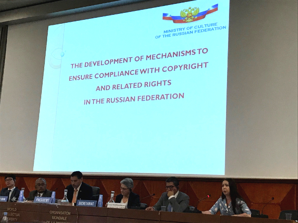 В Женеве, в штаб-квартире Всемирной организации интеллектуальной собственности (ВОИС) в эти дни проходит 13-й сессии Консультативного комитета по защите прав. Выступление российской делегации — представителей Роспатента и Министерства культуры Российской Федерации, которое состоялось во второй день работы сессии, было признано одним из главных событий.