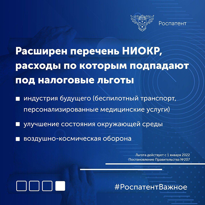 ✓ Постановление Правительства РФ от 18.02.2022 № 207 «О внесении изменений в перечень научных исследований и опытно-конструкторских разработок, расходы налогоплательщика на которые в соответствии с пунктом 7 статьи 262 части второй Налогового кодекса Российской Федерации включаются в состав прочих расходов в размере фактических затрат с коэффициентом 1,5»